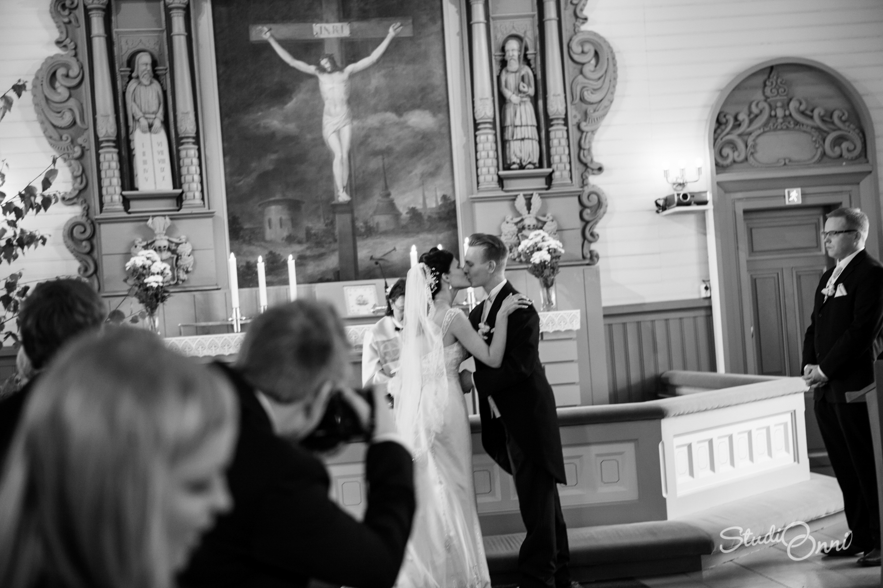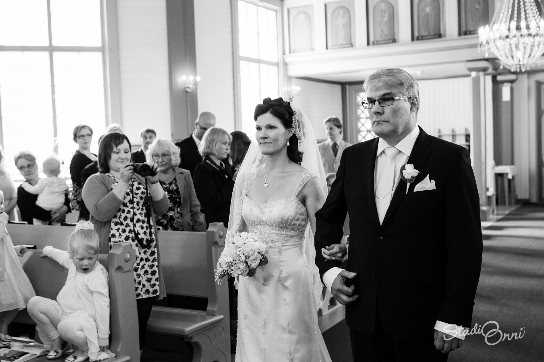 No osasinko olla vain vieraana häissä? Suurimmaksi osaksi. Kirkossa piti vielä ottaa muutama kuva ja kaivoin minä kameran esiin hääjuhlassakin, mutta vain hetkeksi. Olen suoritukseeni tyytyväinen – hääkuvien lisäksi otin alle sata kuvaa vaikka oltiin häissä kuitenkin yli kuusi tuntia. Itsehän en osunut yhteenkään kuvaan (ainakaan minun kamerastani löytyvään), mutta sehän on valokuvaajalle ihan tavallista. Ehkä seuraavissa häissä 🙂